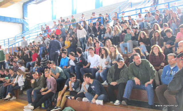 Κατάμεστο ήταν το κλειστό διπλα στο κολυμβητήριο από μαθητές των σχολείων που δημιούργησαν μια ωραία ατμόσφαιρα ενισχύοντας τις ομάδες τους.