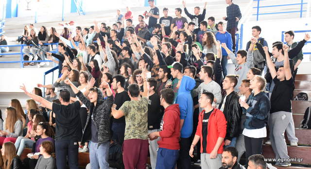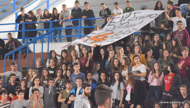 Φοβερή ήταν η εξέδρα στον τελικό μπάσκετ Λυκείων (αγοριών) που έγινε τη Δευτέρα στο ΔΑΚ Χαλκίδας και θύμιζε ατμόσφαιρα από μεγάλο ντέρμπι.
