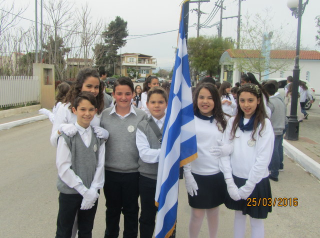 Με πολλά χαμόγελα και δικαιολογημένο καμάρι πόζαραν στο φωτογραφικό φακό τα παιδιά που συμμετείχαν στην ομάδα της Σημαίας του Δημοτικού σχολείου Βαθέως Αυλίδος κατά την παρέλαση της 25ης Μαρτίου.