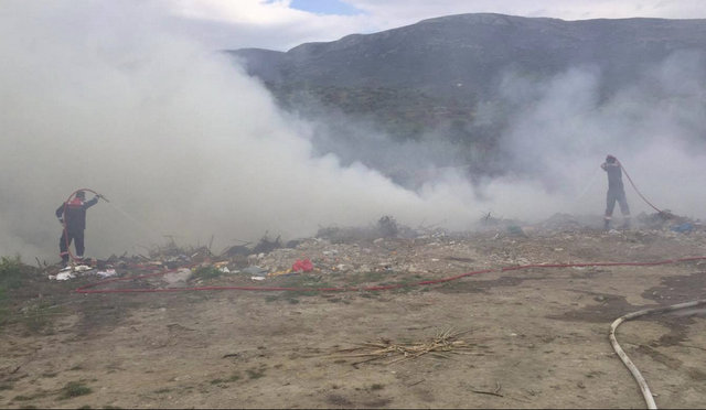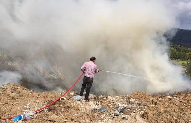 Τη φωτιά είδαν περαστικοί και ειδοποίησαν τους εθελοντές της «Αμαρυνθίας Άρτεμις» (φωτό δεξιά), οι οποίοι μαζί με πυροσβέστες από το Αλιβέρι έσβησαν την πυρκαγιά. Μάνικα έπιασε και ο αντιδήμαρχος Αμαρύνθου Αργύρης Καραβάς, περιορίζοντας τη μόλυνση (φωτό κάτω), αλλά η Δημοτική Αρχή Αλημπατέ δεν κάνει τίποτα για να μπει ένα τέλος στην οικολογική καταστροφή.