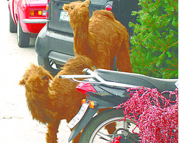 "Από που και ως που καμήλες;" θα αναρωτηθεί κάποιος για τον καταστηματάρχη που τις έβάλε μπροστά στο δρόμο. Η απάντηση είναι απλή. Οι καμήλες παραπέμπουν στους τρεις μάγους, που προσέφεραν τα δώρα τους στο νεογέννητο Χριστό και ελέω Χριστουγέννων έγιναν αντικείμενο εμπορικής εκμετάλλευσης κλείνοντας θέσεις πάρκινγκ στην Ελ. Βενιζέλου.