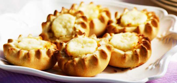 Για τη γέμιση: Λιώνουμε σε μπολ το τυρί με το μίξερ. Προσθέτουμε τη ζάχαρη, τα αβγά, την μαστίχα και το αλεύρι. Ανακατεύουμε καλά.