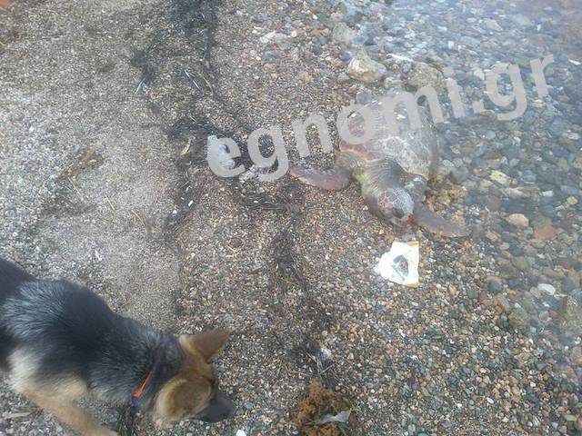 Το ίδιο έκανε κι ένας σκύλος που έκοβε βόλτες δίπλα στο κύμα (φωτό κάτω). Τα τελευταία χρόνια έχουν ξεβραστεί πολλές νεκρές χελώνες στις παραλίες της ευρύτερης περιοχής της Χαλκίδας. Ας ελπίζουμε να μην εμφανιστούν ανάλογα κρούσματα φέτος.