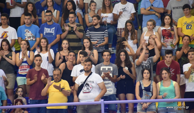 Οι Χαλκιδέοι φίλαθλοι σε κάθε φάση χειροκροτούσαν και αποθέωναν τους διεθνείς μας που έκαναν επίδειξη δύναμης.