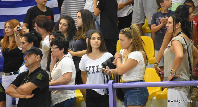 Δεκάδες Χαλκιδέοι, επώνυμοι και ανώνυμοι, μικρά παιδιά, αλλά και όμορφες παρουσίες που πάντα κάνουν αισθητή την παρουσία τους στο κλειστό Κανήθου έδωσαν βροντερό «παρών», υποχρεώνοντας τον προπονητή της Ελλάδας Ηλία Παπαθεοδώρου να δηλώσει ότι «αυτός ο κόσμος είναι το μεγάλο μας κίνητρο στην α' φάση που τα παιχνίδια μοιάζουν ...εύκολα. Μας δίνει τεράστια ώθηση και θα κάνουμε τα πάντα για να τον ευχαριστήσουμε».