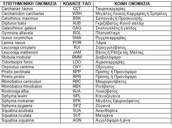 Απαγόρευση αλιείας και διακίνησης ειδών καρχαρία και σελαχιών