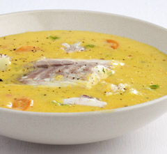 Εναλλακτικά, μπορούμε να χτυπήσουμε στο μπλέντερ 1 φλιτζάνι χυμό λεμόνι και 1 φλιτζάνι λάδι και να ρίξουμε το μείγμα στη σούπα κατά την τελευταία βράση του ψαριού. Έτσι, η σούπα μας θα μοιάζει αβγοκομμένη, αλλά δεν θα περιέχει αβγό.