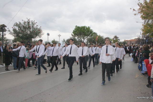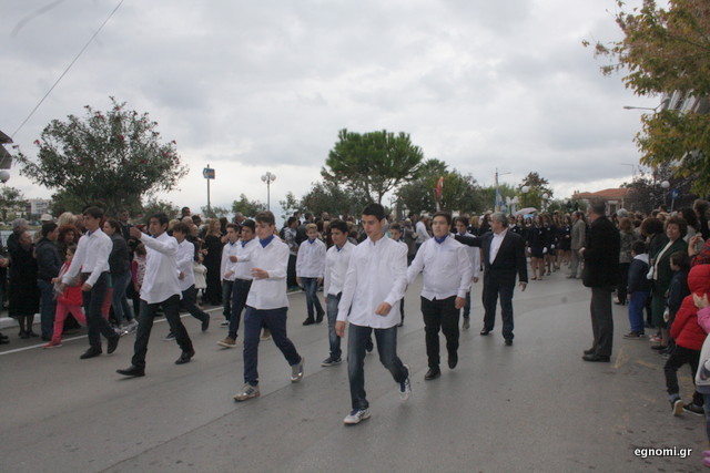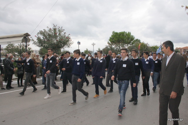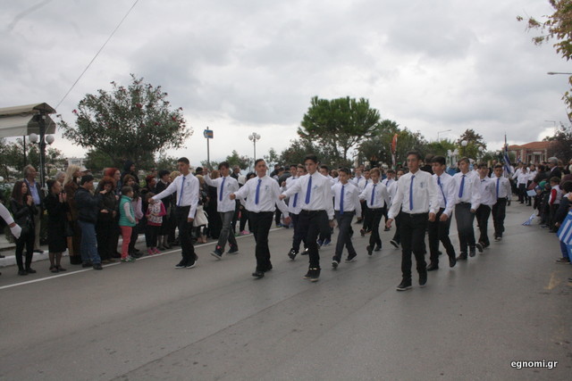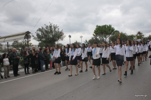 Καλό βηματισμό είχαν οι περισσότεροι μαθητές των γυμνασίων Χαλκίδας στην παρέλαση της 28ης Οκτωβρίου. Ξεχώρισαν οι μαθήτριες του 5ου Γυμνασίου Χαλκίδας, οι οποίες παρέλασαν με στιλ και σαν ...κομάντο (φωτό δεξιά).