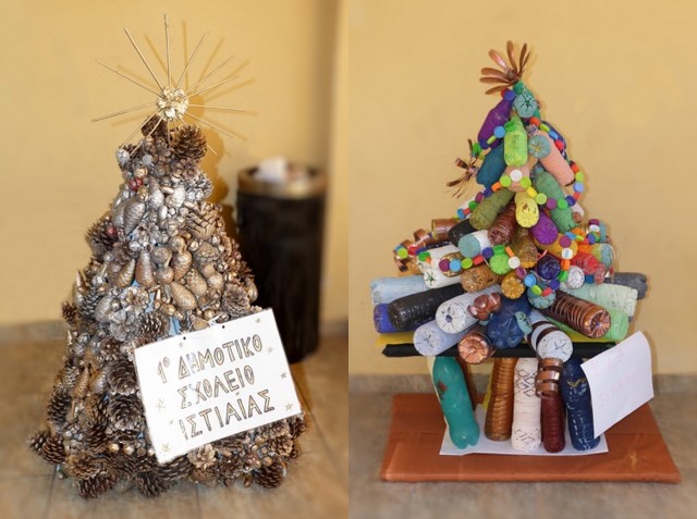 Το ένα καλύτερο από το άλλο είναι τα Χριστουγεννιάτικα Δένδρα που φιλοτέχνησαν με ανακυκλώσιμα υλικά οι μικροί μαθητές των Δημοτικών Σχολείων του Δήμου Ιστιαίας- Αιδηψού.