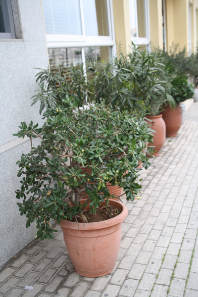Οι γλάστρες έξω από το ξενοδοχείο είναι μια ωραία πινελιά πρασίνου.