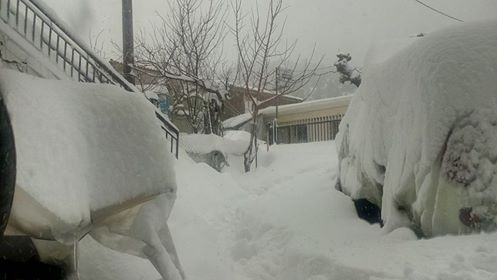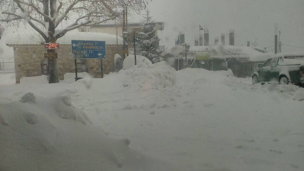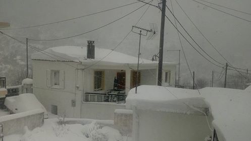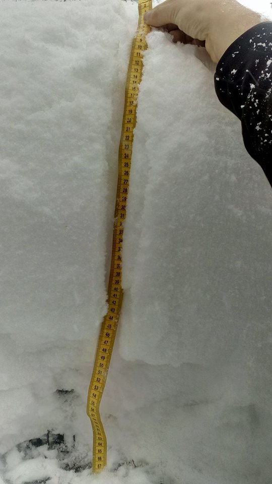 Ρίχνει ακατάπαυστα χιόνι στους Στρόπωνες από χθες το πρωί και επισκέπτης μάς έστειλε φωτό -τεκμήριο: Μέτρησε το πάχος του χιονιού και το ...στρώσιμο βρέθηκε να έχει ύψος 70 εκατοστά (φωτό πάνω δεξιά)!
