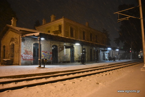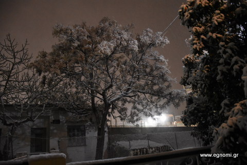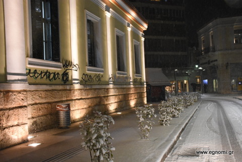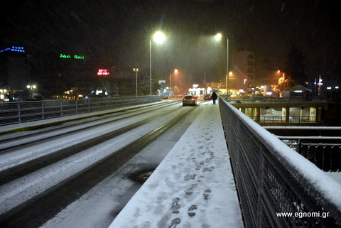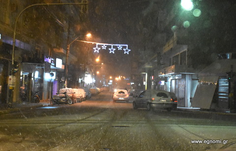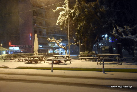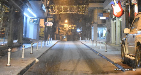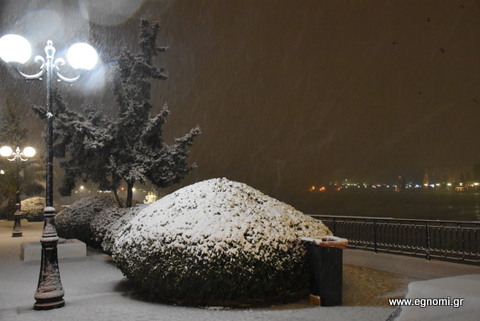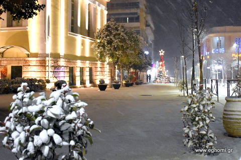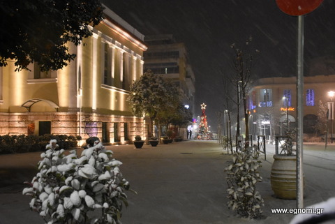 Δείτε φωτογραφίες από τη χιονισμένη Χαλκίδα, λίγο πριν τα μεσάνυχτα.