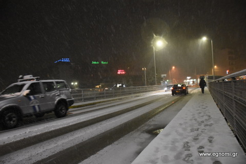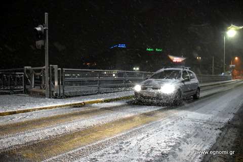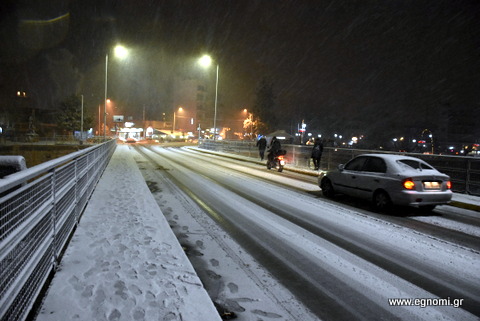 Οι νυφάδες συνεχίζουν να πέφτουν και οι δρόμοι χρειάζονται ήδη, ιδιαίτερη προσοχή από οδηγούς οχημάτων και πεζούς.