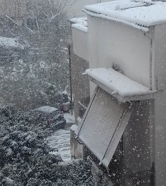 Οι φωτογραφίες που βλέπετε περιγράφουν την κατάσταση που επικρατεί αυτή την ώρα (2:30 το μεσημέρι της Τρίτης 10 Ιανουαρίου) στο κέντρο της Χαλκίδας, με το χιόνι να πέφτει πυκνό και να στρώνεται αμέσως.