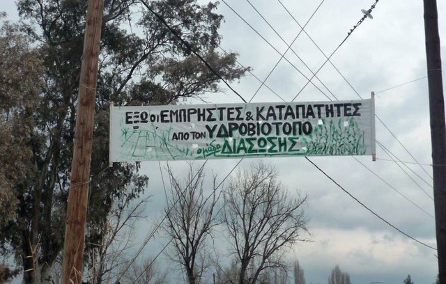 Παρέμβαση πολιτών με πανό στον υγροβιότοπο του Κολοβρέχτη