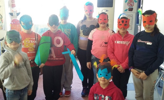 Έπειτα, τα παιδιά έχοντας απλά υλικά όπως χαρτί, κόλλα και μαρκαδόρους κατασκεύασαν τα δικά τους μοναδικά κοστούμια και στολίδια.