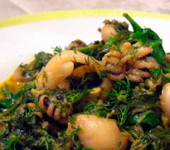 Το βάζουμε να μαραθεί σε κατσαρόλα με 3 κ.σ. ελαιόλαδο, ανακατεύοντας (ή, εναλλακτικά, το ζεματίζουμε για 1'). Προσθέτουμε τις καυκαλήθρες και τον άνηθο. Την κατάλληλη στιγμή το προσθέτουμε στις σουπιές και αφήνουμε να σιγοβράσουν όλα μαζί 10'.