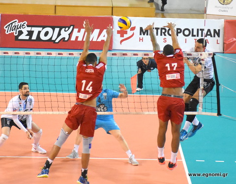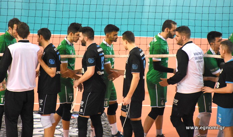 όπου με τους πράσινους αγωνίζεται κι ένας Χαλκιδέος, ο Φάνης Ρουσόπουλος (στη φωτό χαιρετά χαμογελαστός τον Ντίνα του Ηρακλή).