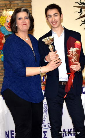 Ο Βασίλης Βλάχος που ήρθε από το γειτονικό Πίνδαρο Θηβών, πήρε το βραβείο απο την Πρόεδρο του Γ.Σ. Νεάπολης Μαρουδιά Πάφρα-Λουκουκίδη για την 3η θέση στα 4x100 στο Πανελλήνιο Πρωτάθλημα Α/Γ και την 5η θέση στα 200μ στο Πανελλήνιο Πρωτάθλημα Εφήβων.