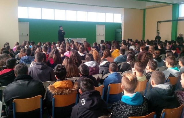 Ο Σεβασμιώτατος μίλησε στους 300 μαθητές του γυμνασίου με θέμα τις σχέσεις επιστήμης και πίστης, με γνώμονα την προαγωγή της ανθρωπότητας με την ορθή χρήση και των δυο.
