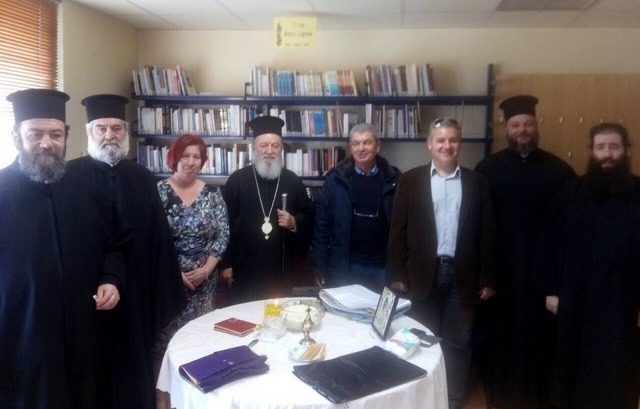 Στη συνέχεια, μαζί με τους Ιερείς της Ενορίας και τον Αρχιμανδρίτη Νεκτάριο Ευγενικό, τέλεσε το μυστήριο του Ιερού Ευχελαίου στο χώρο της Βιβλιοθήκης του Λυκείου, όπως συνηθίζεται κατά τα τελευταία χρόνια, στην προ του Πάσχα περίοδο της Σαρακοστής.