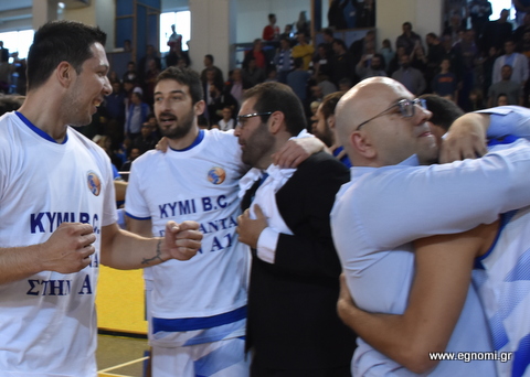 Ο Γυμναστικός της Κύμης θριάμβευσε στον "τελικό" της χρονιάς επί του Απόλλωνα Πατρών και η Εύβοια έχει χαρά μεγάλη που η ομάδα-θαύμα στην Α1 (Basket League) θα παίζει και πάλι...