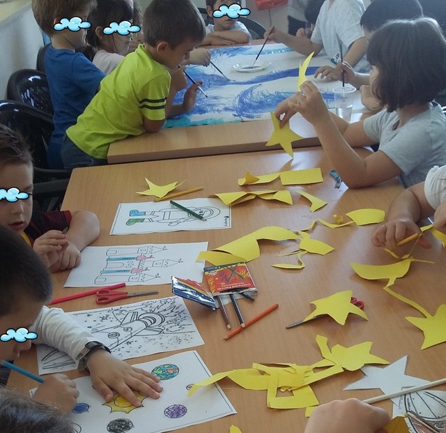 Στην συνέχεια ακολούθησε δραστηριότητα όπου τα παιδιά κατασκεύασαν το δικό τους ανάγλυφο ουρανό, στολίζοντάς τον με αστέρια με το όνομα της μητέρας τους.