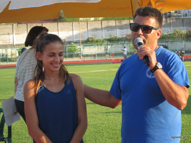 Η Χαλκιδέα Αναστασία Μαρινάκου με τον προπονητή του Γ.Σ. Νεάπολης και πρώτος της δάσκαλο στο στίβο, Κώστα Μαρκόπουλο.