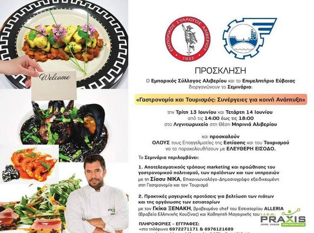 Ο Εμπορικός Σύλλογος Αλιβερίου και το Επιμελητήριο Εύβοιας διοργανώνουν σεμινάριο με θέμα : «Γαστρονομία και Τουρισμός: συνέργειες και κοινή Ανάπτυξη».