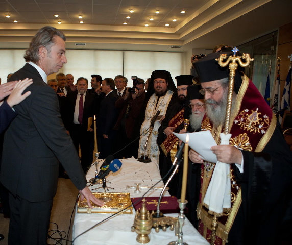 Εδώ η αμηχανία είναι εμφανής, αλλά ευτυχώς υπάρχουν τα εκκλησιαστικά κεριά να φωτίζουν το νέο μας ηγέτη: