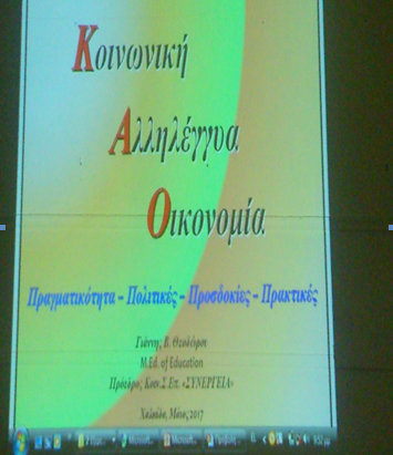 Από την πληρέστατη παρουσίαση του ομιλητή Γιάννη Β. Θεοδώρου, ενημερώθηκαν οι παρευρισκόμενοι αλλά και οι ενδιαφερόμενοι για το θεσμικό πλαίσιο που διέπει τις Κοιν.Σ.Επ, τη διαδικασία για την ίδρυση και λειτουργία τους, τον τρόπο χρηματοδότησης και τις δυνατότητες ως εφαρμόσιμη εναλλακτική πρόταση, για την ικανοποίηση των σύγχρονων κοινωνικών αναγκών.