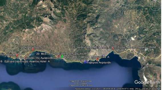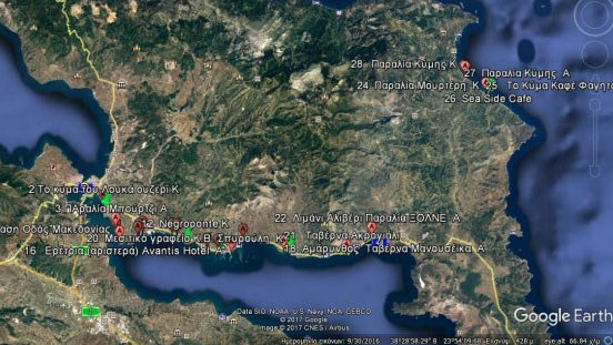 Πραγματοποιήθηκαν δειγματοληψίες θαλασσινού στις 20 Ιουνίου 2017 σε περιοχές της Εύβοιας με τις παρακάτω συνθήκες: Μερικές δειγματοληψίες έγιναν στα 5 μέτρα μέσα στη θάλασσα , ενώ άλλες έγιναν σε διαφορετικά σημεία αρκετά μακριά από την ακτή.