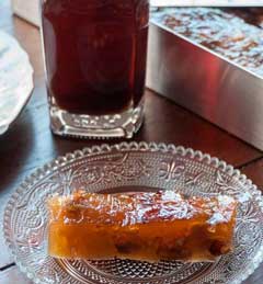 Σε μια κατσαρόλα βάλτε 3-4 κουταλιές ζάχαρη και αφήστε την να καραμελώσει.Ριξτε τη μισή ποσότητα νερού στην κατσαρόλα και ανακατέψτε. Στη συνέχεια ρίξτε και την υπόλοιπη ζάχαρη μέσα στην κατσαρόλα και αφήστε το σιρόπι να βράσει για δέκα περίπου λεπτά. Την αλλη μισή ποσότητα κρύου νερού θα την ανακατέψετε με το κορν φλαουρ ή το νισεστέ σε ενα μπωλ.