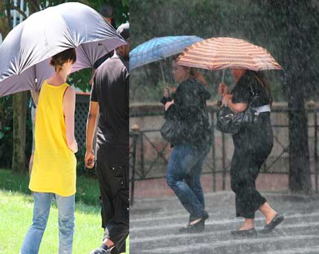 Από το απόγευμα, όμως, της Κυριακής θα αρχίσουν ...οι μπόρες και οι χαλαζοπτώσεις. Γι' αυτό όσοι πάτε κάπου το διήμερο, μην ξεγελαστείτε από τη ζέστη του Σαββάτου, αλλά πάρτε μαζί σας ομπρέλες και ζακετούλες.