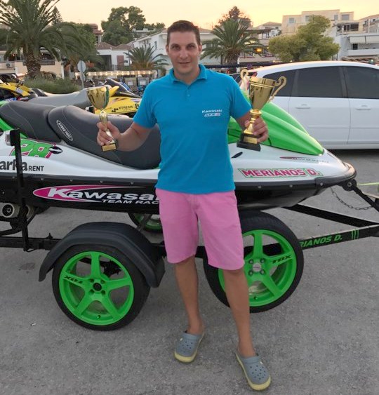 Οι αγώνες διεξήχθησαν το Σαββατοκύριακο 2-3 Σεπτεμβρίου και ο Δαυίδ Μέριανος κατετάγη 3ος στην τελική κατάταξη των αγώνων. Στη φωτογραφία τον βλέπετε μπροστά στο τζετ σκι του, με τα κύπελλα που αποκόμισε στα χέρια και πιο κάτω σε σκηνή δράσης.