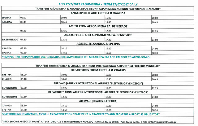 Στον πίνακα που ακολουθεί μπορείτε να δείτε αναλυτικά τα δρομολόγια από και προς το Αεροδρόμιο: