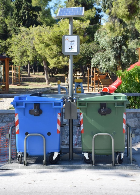 Επιπρόσθετα, οι συγκεκριμένοι κάδοι διαθέτουν σύστημα με ανεμιστήρα κατάλληλα προσαρμοσμένα στο καπάκι, με φίλτρο ενεργού άνθρακα. Η όλη λειτουργία είναι φιλική προς το περιβάλλον, αφού γίνεται μέσω φωτοβολταϊκού πάνελ ισχύος 10W 12V.