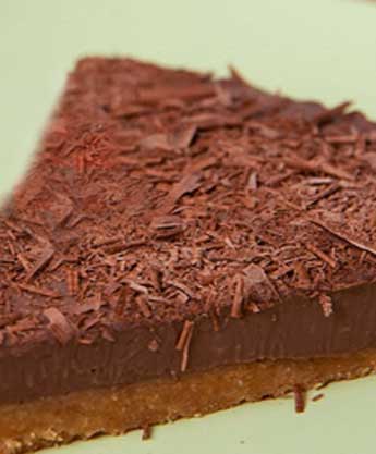 Στο μούλτι θρυμματίζουμε τα μπισκότα. Σε μπολ ανακατεύουμε καλά τα τριμμένα μπισκότα με το βούτυρο, μέχρι το μείγμα να έχει την υφή υγρής άμμου. Στρώνουμε τα τριμμένα μπισκότα στον πάτο μιας στρογγυλής φόρμας με αποσπώμενη βάση, πιέζοντας καλά με ένα κουτάλι. Από πάνω ρίχνουμε το μείγμα σοκολάτας. Βάζουμε στο ψυγείο για 2 ώρες ή στην κατάψυξη για περίπου 40 λεπτά μέχρι να δέσει. Απολαμβάνουμε κρύα.