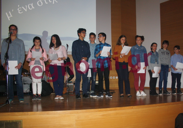 Πενήντα μαθητές από τις Γούβες μέχρι την Κύμη διάβασαν τις προσωπικές τους δημιουργίες και χειροκροτήθηκαν από γονείς και εκπαιδευτικούς. Μουσικά έντυσαν την εκδήλωση τα μέλη της μαθητικής μπάντας της Χαλκίδας «The Knives».