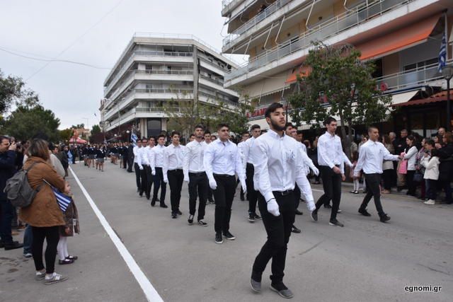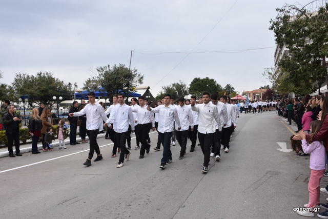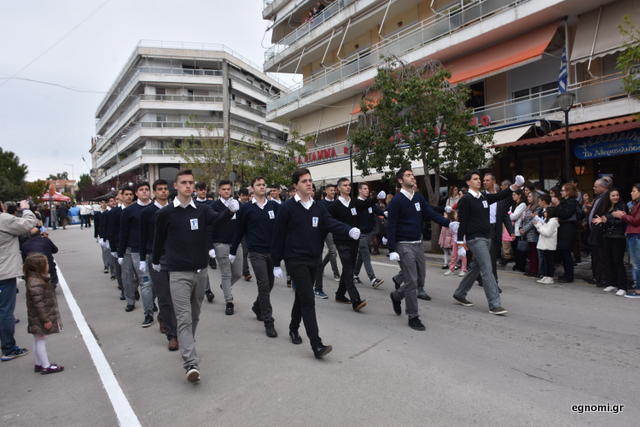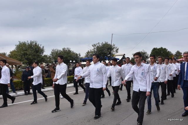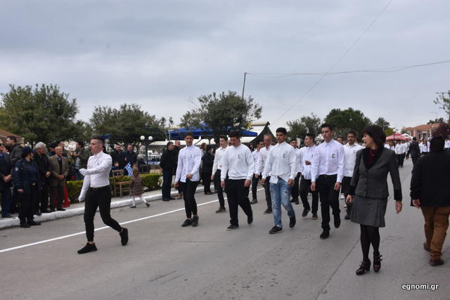 Με διαφορά τον καλύτερο βηματισμό απ΄ όλους τους μαθητές είχαν τα κορίτσια του 3ου Λυκείου Χαλκίδας (φωτό δεξιά). Και τα αγόρια, όμως, δεν τα πήγαν άσχημα (φωτό κάτω).