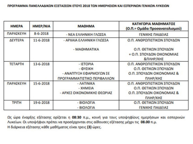 Ανακοινώθηκε το πρόγραμμα των πανελλαδικών εξετάσεων