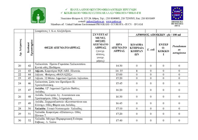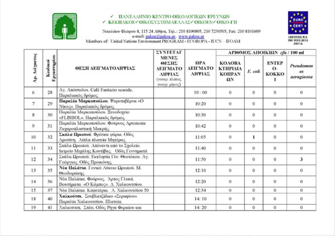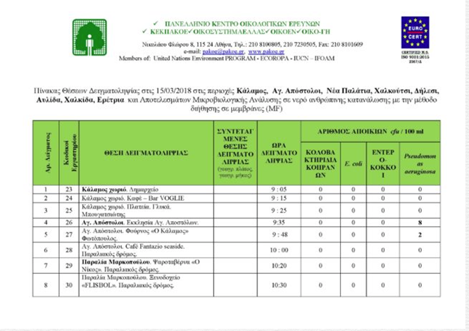 Περισσότερο ανησυχητικά είναι τα αποτελέσματα, για το Δήλεσι και άλλες περιοχές εκτός νομού Ευβοίας, όπου βρέθηκαν κολοβακτηρίδια και ψευδομονάδες, όπως μπορείτε να δείτε και στους ακόλουθους πίνακες.