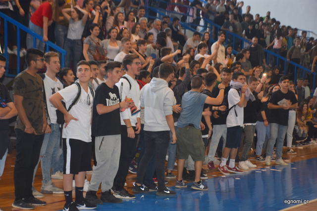 Το σπουδαίο ματς έγινε το πρωί της Δευτέρας (23/4) στο κλειστό ΔΑΚ που -όπως αναμενόταν- γέμισε από μαθητές-φιλάθλους των δύο σχολείων.