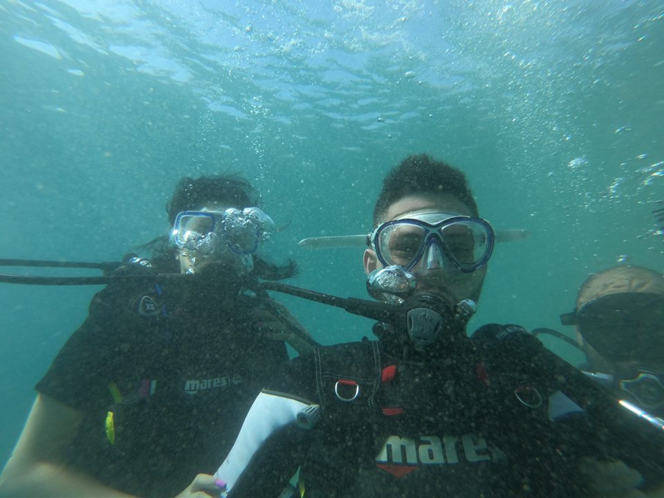 Οι δυο τυχεροί ακολούθησαν όλα τα βήματα πριν ανακαλύψουν τις ομορφιές του βυθού. Ξεκίνησαν με το θεωρητικό μάθημα και στη συνέχεια φόρεσαν τον απαραίτητο εξοπλισμό και περιπλανήθηκαν στον άγνωστο κόσμο της θάλασσας.