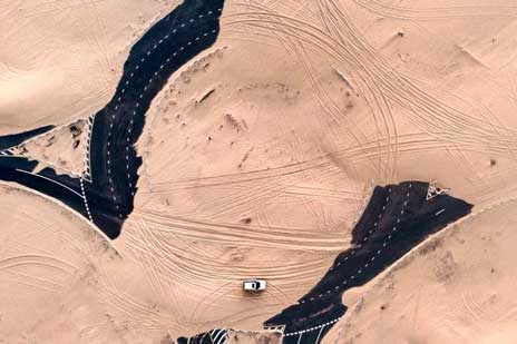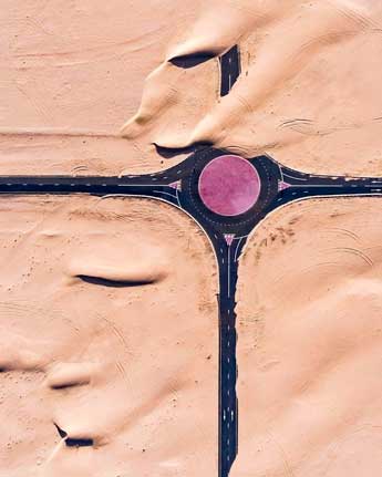 Η αργή κίνηση των αμμόλοφων και οι σποραδικές αμμοθύελλες αρκούν για να αλλάξει το σκηνικό. Εκεί λοιπόν που είχαμε μεγάλους αυτοκινητόδρομους βλέπουμε να καλύπτονται από τόνους άμμου.