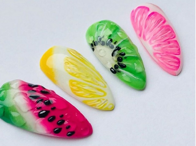 Γι' αυτό ψάξαμε και βρήκαμε το πιο δροσερό μανικιούρ, ο λόγος εννοείται για τα fruitnails, καρπούζια, λεμόνια, ακτινίδια όλα επάνω στα νύχια σας! Πανέμορφα σχέδια φρούτων σε πολύ ζωντανά χρώματα.