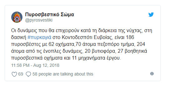 Η τελευταία επίσημη ανακοίνωση της Πυροσβεστικής, στις 9:30 το βράδυ, αναφέρει τα εξής:
