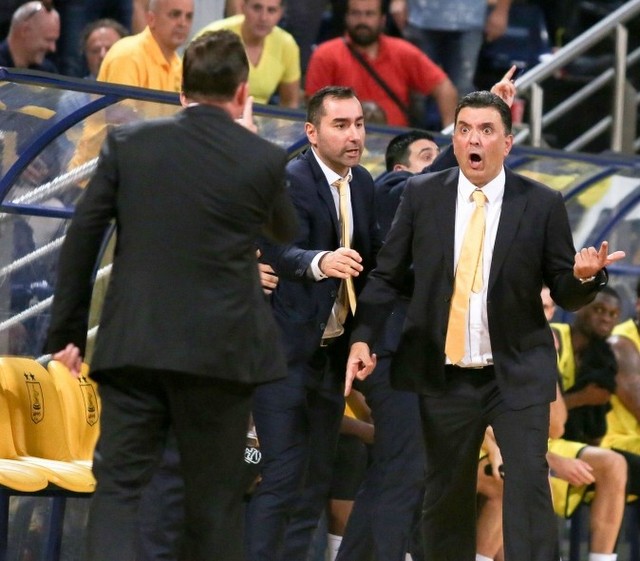 Με αφoρμή ένα φάουλ του Νικ Καλάθη στον Βεργίνη, ο προπονητής του Αρη Βαγγέλης Αγγέλου διαμαρτυρήθηκε έντονα στους διαιτητές.