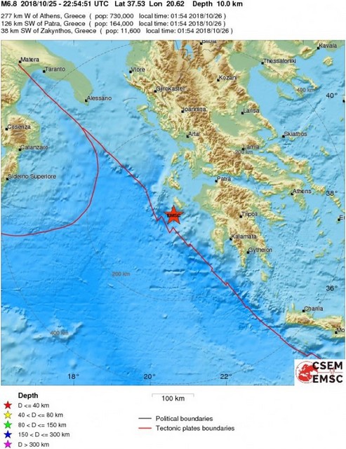 Σύμφωνα με το Γεωδυναμικό Ινστιτούτο του Αστεροσκοπείου Αθηνών ο ισχυρός σεισμός σημειώθηκε στον θαλάσσιο χώρο νοτιοδυτικά της Ζακύνθου, ο οποίος έγινε αισθητός ακόμη και στην Αθήνα όπως και σε πολλές περιοχές της Δυτικής Ελλάδας και των νησιών του Ιονίου.