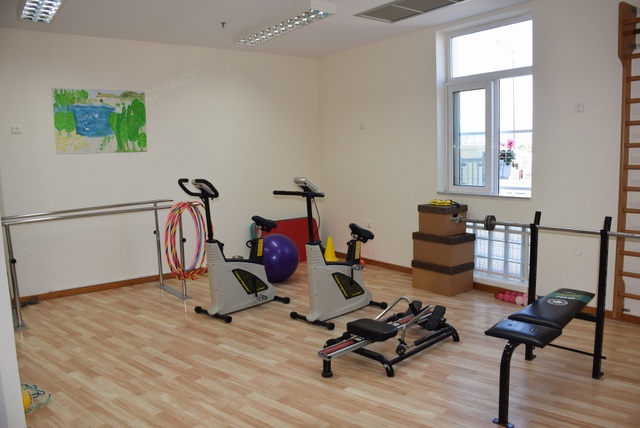 Διαθέτει κουζίνα, τάξη με τραπεζοκαθίσματα και εξοπλισμένο γυμναστήριο (φωτό κάτω).